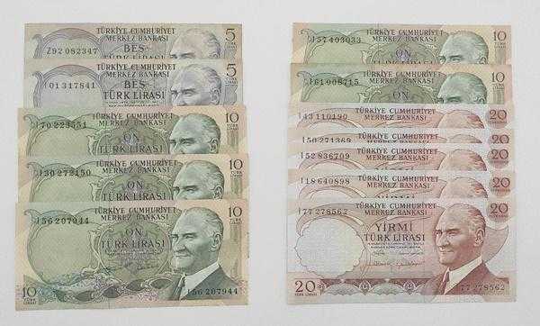 Türkiye, 5-10-20 Lira, 1976/1983, 6.Emission In different condition between XF and AUNC, (Total 10 Banknotes), Stained başlıklı ürün, Efemera, Müzik, Sinema > Nümismatik, Para, Madalya > Kağıt Paralar > Cumhuriyet Dönemi > 7. Emisyon kategorisi altında İkinci El olarak satılmaktadır.