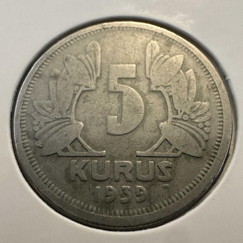 Türkiye 5 Kuruş 1939. Kapamasında.