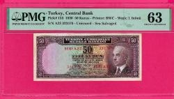Türkiye, 50 KURUS 1930 P133 INÖNÜ UNC PMG 63