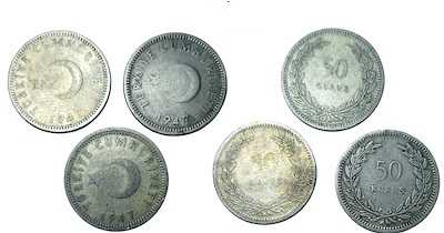 Türkiye 50 Kuruş, 1947-48 Gümüş 12 gr 3 Adet, 17 gün önce satışa sunulmuştur.