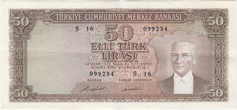 Türkiye · 50 Türk Lirası · 5. Emisyon · 7. Tertip · Ç.Ç.T, dün satışa sunulmuştur.