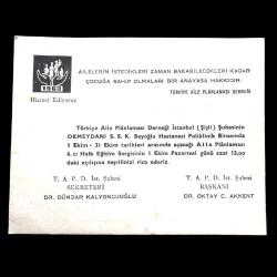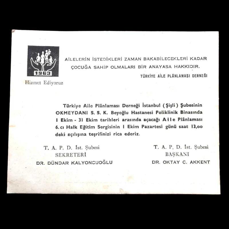 Türkiye Aile Planlaması Derneği Oktay Cumhur AKKENT - Davetiye başlıklı ürün, Efemera, Müzik, Sinema > Belge ve Evraklar > Diğer kategorisi altında İkinci El olarak satılmaktadır.