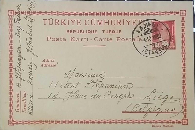 Türkiye Belçika 1939 7 1/2 kuruş Ermeni Antiye Kadıköy'den Liege'e gönderilmiş,nadir., 5 ay önce satışa sunulmuştur.