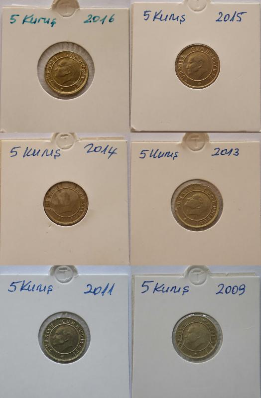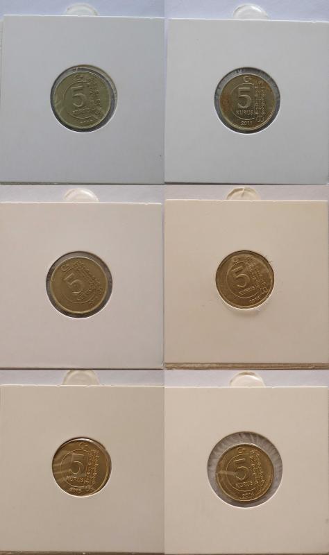 Türkiye Cumhuriyet 2009//11/13/14/15/16 Yıları 5 Kuruş Farklı Kondisyonlarda No 1033, 1 yıl önce satışa sunulmuştur.