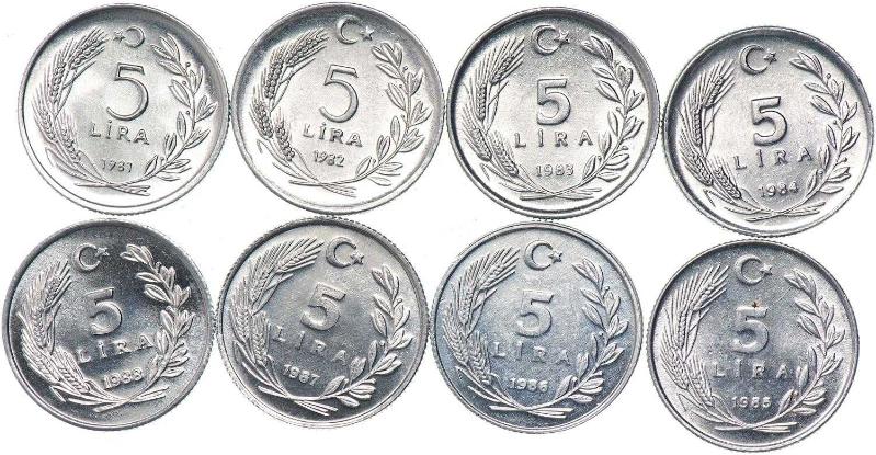 Türkiye Cumhuriyet 5 lira 1981, 1982, 1983, 1984, 1985, 1986, 1987, 1988 (7830), en son 23 gün önce güncellenmiştir.