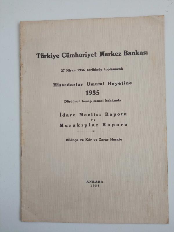 Türkiye Cumhuriyet Merkez Bankası 27 Nisan 1936 Tarihinde Toplanacak Hissedarlar Umumi Heyetine 1935 adlı eser, Kitap > İş ve Ekonomi > Türkiye Ekonomisi kategorisinde İkinci El olarak satıştadır.