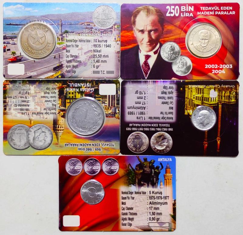 10 Kuruş:1938 5 Kuruş:1976 1 Lira:1979 1 Lira:1981 250 Bin:2002