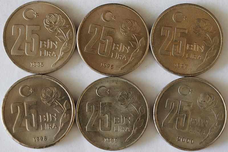 Türkiye Cumhuriyeti 1995/1996/1997/1998/1999/2000 Yıları 25 Bin Lira Takım ( 9218), 6 gün önce satışa sunulmuştur.