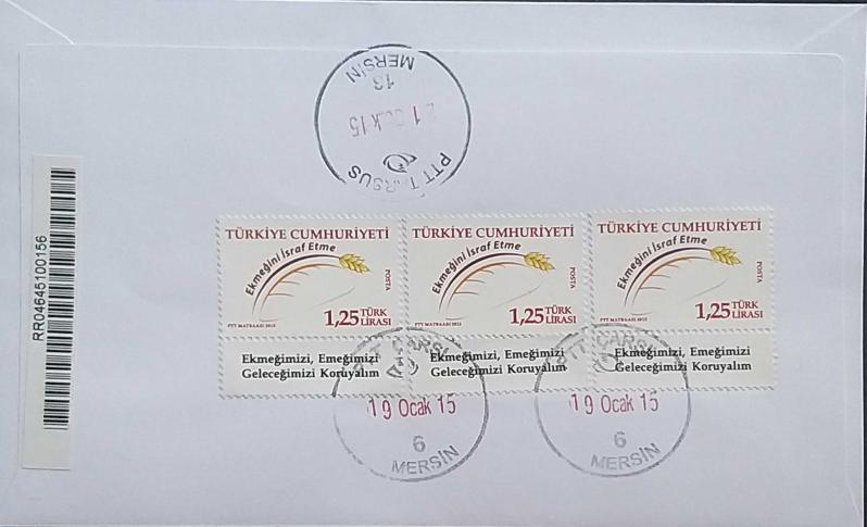 Türkiye Cumhuriyeti 2015 2 Adet Büyük Boy FDC Doğal Koruma Alanları & Ekmek İsrafı Türkiye Yüzyılı Postadan Geçmiş.