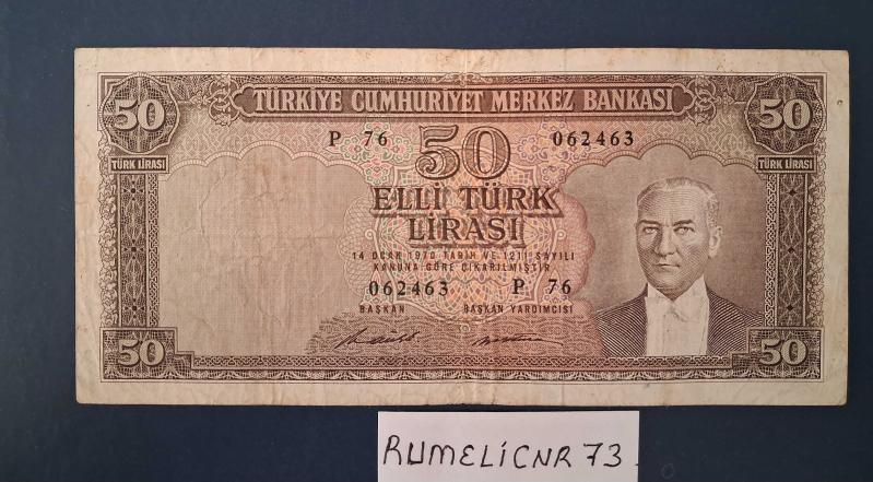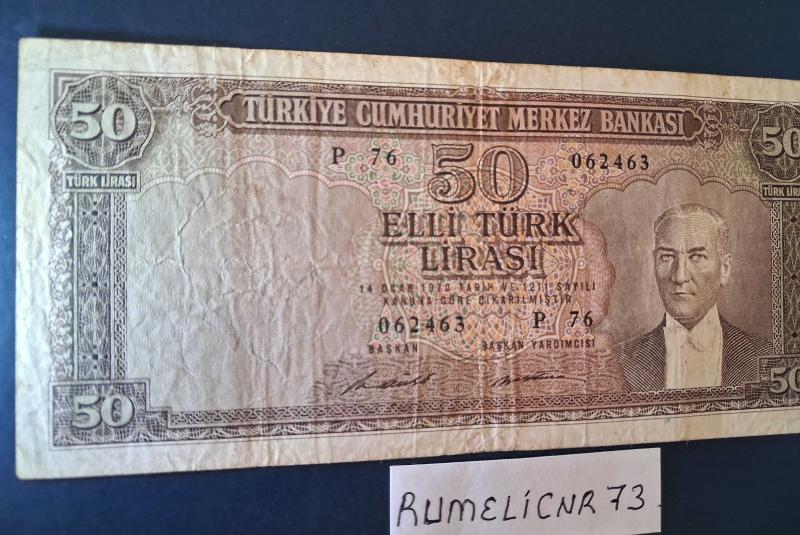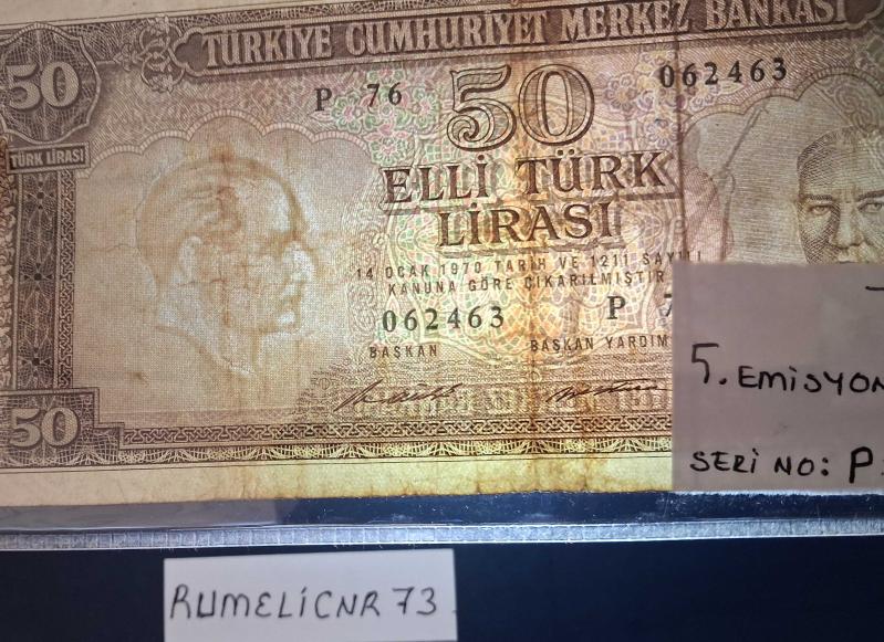 Türkiye Cumhuriyeti - 5.Emisyon / 7. Tertip - 50 Lira - SERİ: P76 062463 - ÇT/VF, 14 gün önce satışa sunulmuştur.