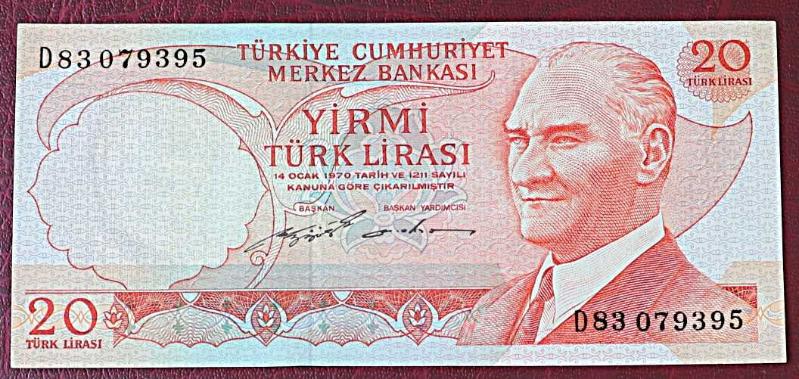 Türkiye Cumhuriyeti 6. Emisyon 1 Tertip 20 Lira D83 079395 ÇİL, en son 5 gün önce güncellenmiştir.