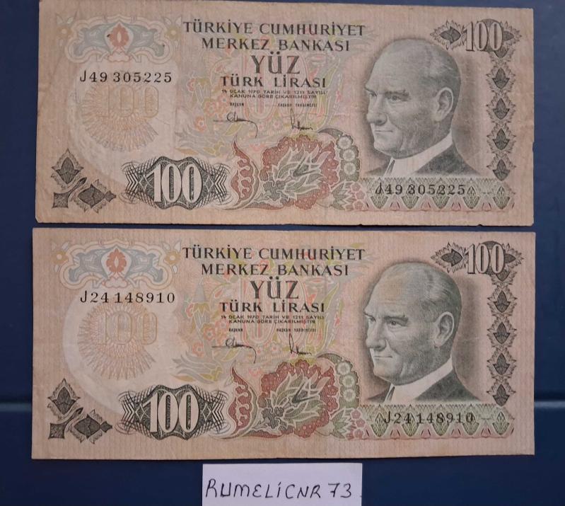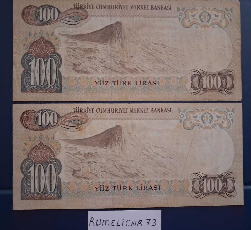 Türkiye Cumhuriyeti - 6.Emisyon/ 3. Tertip 100 TL.-SERİ NO: J24/J49 2 Adet /ÇT/VF başlıklı ürün, Efemera, Müzik, Sinema > Nümismatik, Para, Madalya > Kağıt Paralar > Cumhuriyet Dönemi > 6. Emisyon kategorisi altında İkinci El olarak satılmaktadır.