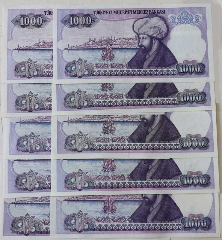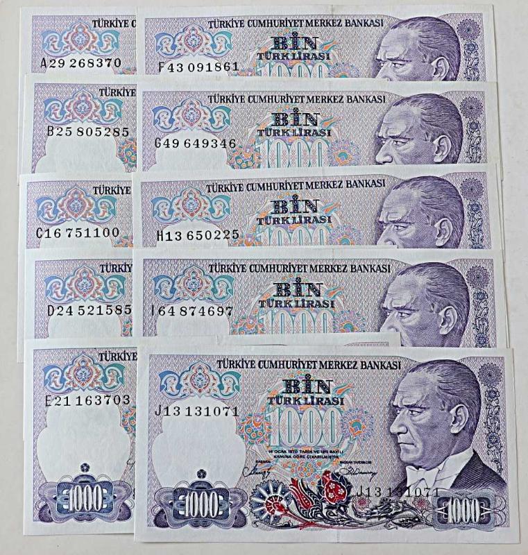 Türkiye Cumhuriyeti 7. EMİSYON 1000 LİRA SERİ A29,B25,C16,D24,E21,F43,G49,H13,I64,J13 TAM TAKIM Çil, en son bir saat önce güncellenmiştir.
