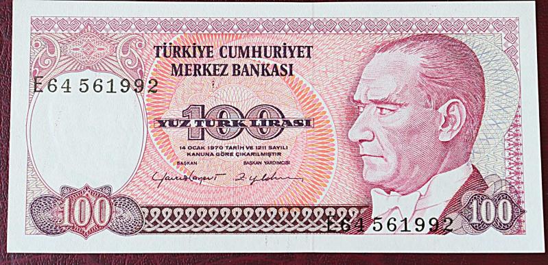 Türkiye Cumhuriyeti 7. Emisyon 1. Tertip 100 Lira E64 561992 ÇİL, en son 5 gün önce güncellenmiştir.