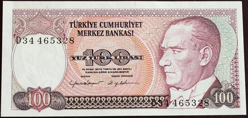 Türkiye Cumhuriyeti 7. Emisyon 2. Tertip 100 Lira D34 465328 Çil, 5 gün önce satışa sunulmuştur.