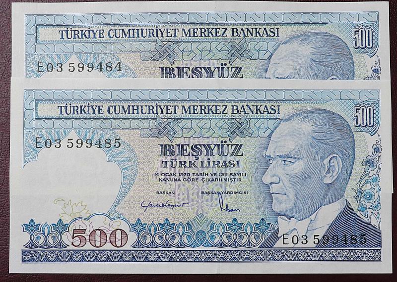 Türkiye Cumhuriyeti 7. Emisyon 2. Tertip 500 Lira Seri Takipli E03 599484 - 85 ÇİL, en son dün güncellenmiştir.