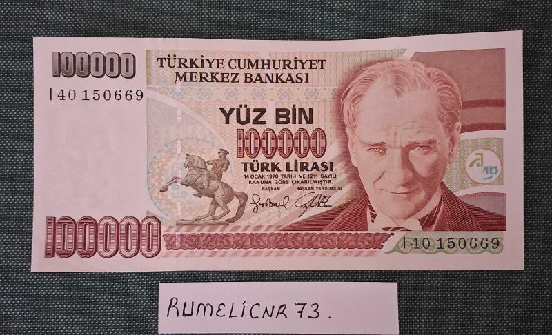 Türkiye Cumhuriyeti - 7. Emisyon/ 3. Tertip - 100.000 TL.- 1 Adet /ÇİL/UNC başlıklı ürün, Efemera, Müzik, Sinema > Nümismatik, Para, Madalya > Kağıt Paralar > Cumhuriyet Dönemi > 7. Emisyon kategorisi altında İkinci El olarak satılmaktadır.