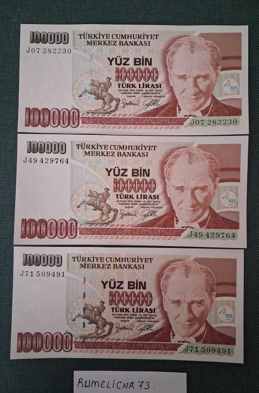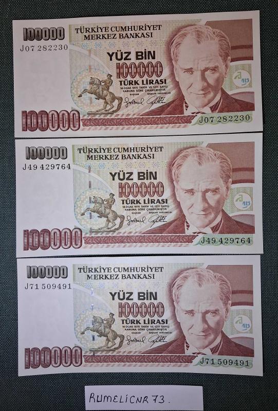 Türkiye Cumhuriyeti - 7. Emisyon/ 3. Tertip - 100.000 TL.- 3 Adet /ÇİL/UNC başlıklı ürün, Efemera, Müzik, Sinema > Nümismatik, Para, Madalya > Kağıt Paralar > Cumhuriyet Dönemi > 7. Emisyon kategorisi altında İkinci El olarak satılmaktadır.