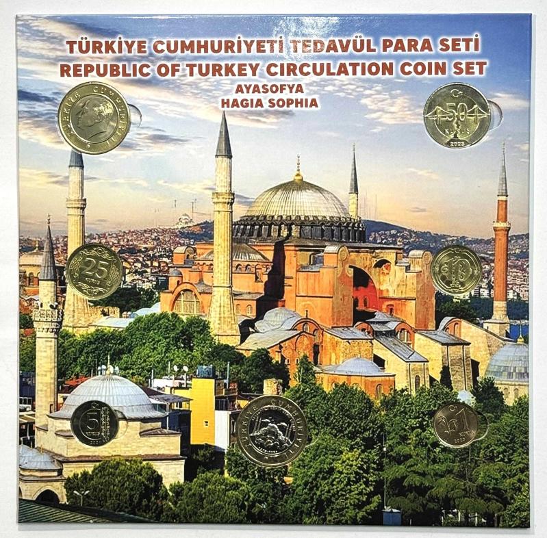 Türkiye Cumhuriyeti Tedavül Para Seti, Ayasofya (Hagia Sophia) temasıyla hazırlanmış özel tasarım bir koleksiyon setidir. Setin ön yüzünde Ayasofya’nın dış görünümü, arka yüzünde ise ihtişamlı iç mekân görseli yer almaktadır. Set içerisinde 1 Türk Lirası (Ayasofya temalı), 1 Türk Lirası, 50 Kuruş, 25 Kuruş, 10 Kuruş, 5 Kuruş ve 1 Kuruş tedavül paraları bulunmaktadır. Paralar özel kartonet içerisinde muhafaza edilmekte olup koleksiyonluk niteliktedir. Ayasofya temasıyla hazırlanan bu set, hem tarihî hem de kültürel değeri bir arada sunan özel bir koleksiyon parçasıdır. Fotoğraflar ürünün birebir kendisine aittir.