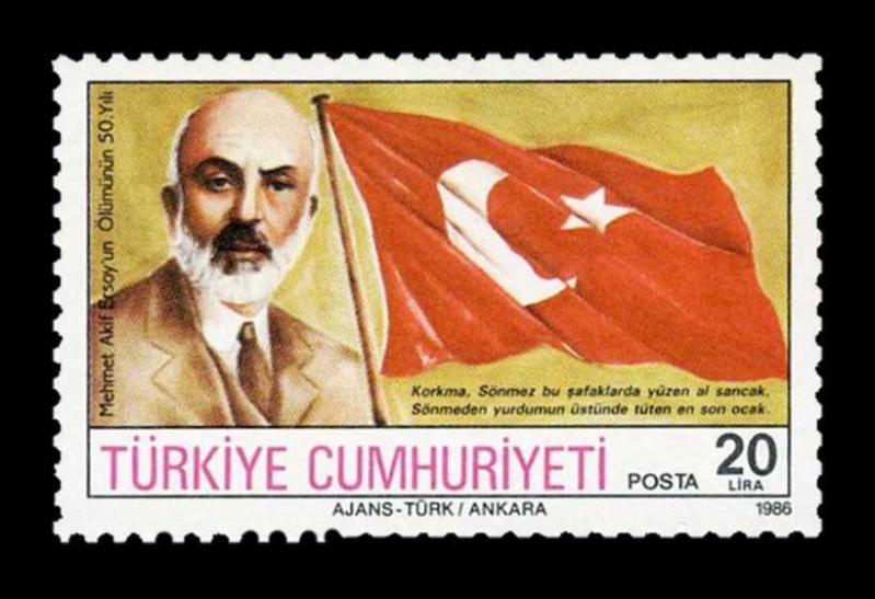 Türkiye Cumhuriyeti, Mehmet Akif Ersoy'un Ölümünün 50. Yılı Anma Pulu. Damgasız 1986 MNH., 1 yıl önce satışa sunulmuştur.