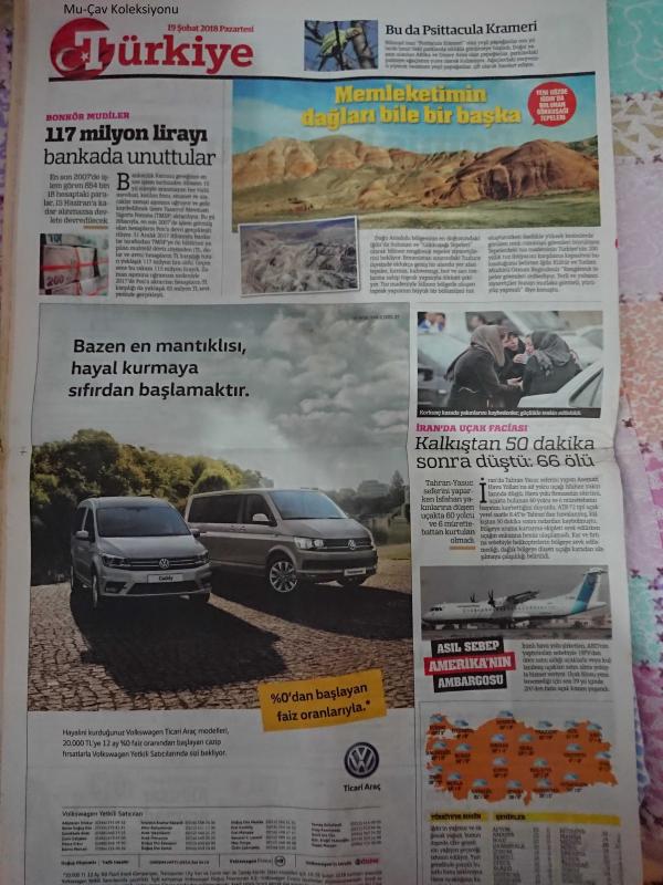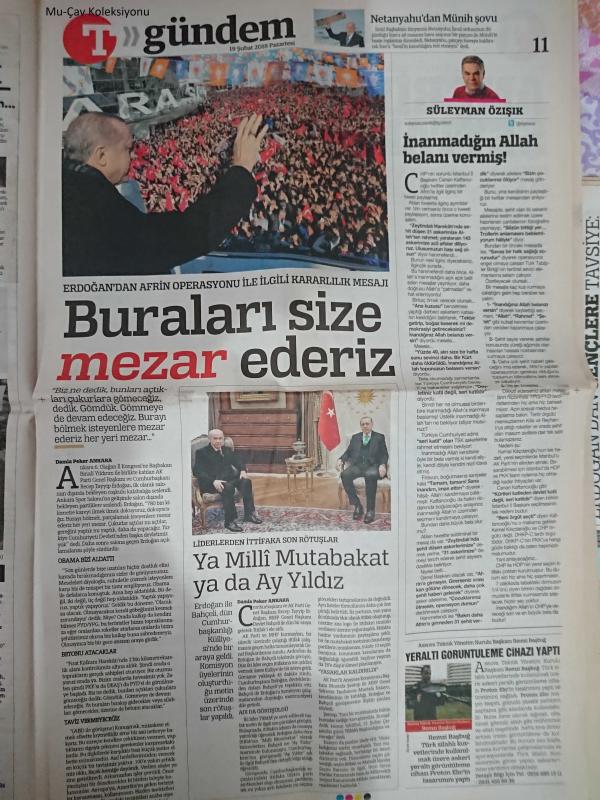 Türkiye Gazetesi,19 Şubat 2018,Cengiz Ünder,Ali Koç,Cüneyt Çakır,Galatasaray,Recep Tayyip Erdoğan,Devlet Bahçeli,Binali Yıldırım,Fatih Terim,Bursaspor,Volkan Demirel,Burak Yılmaz adlı eser Türkçe dilindedir.