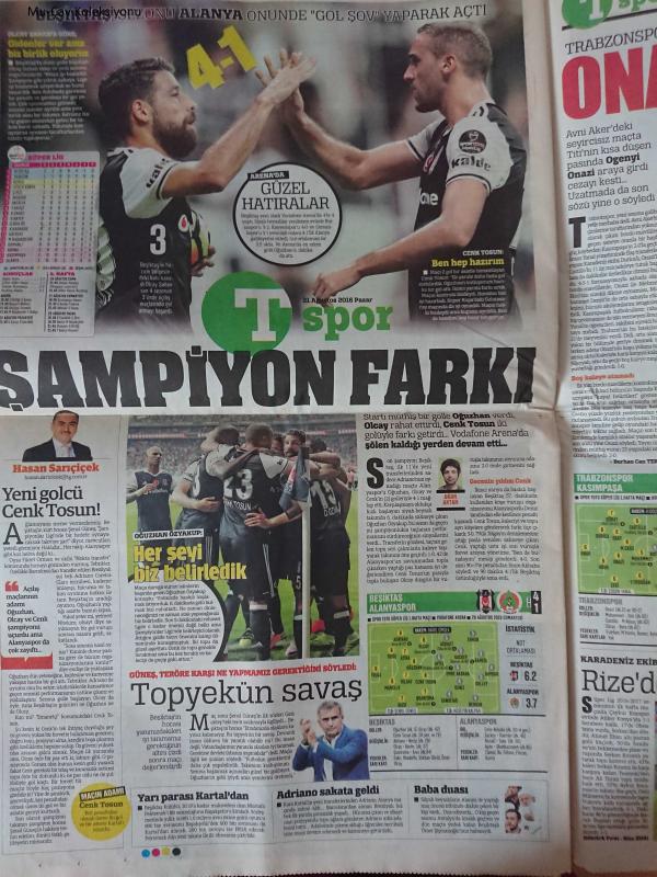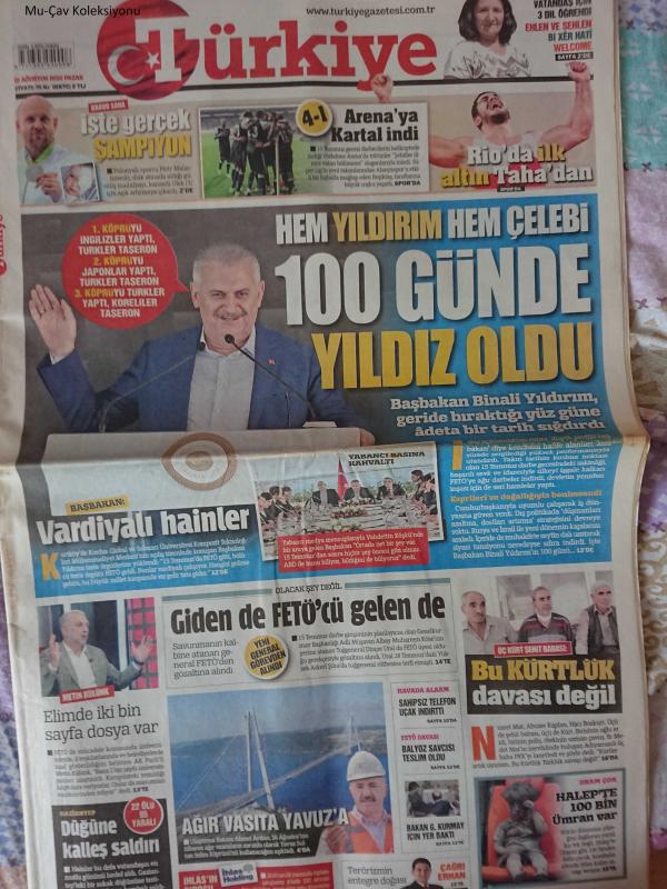 Türkiye Gazetesi,21 Ağustos 2016,Binali Yıldırım,Metin Külünk,Wilma Elles,Recep Tayyip Erdoğan,Hülya Avşar,Trabzonspor,Beşiktaş,Şenol Güneş,Advocaat,Riekerink,Yasemin Can adlı eser Türkçe dilindedir.