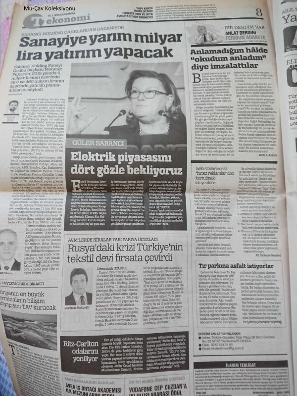 Türkiye Gazetesi,21 Ocak 2015,Avrupa Küçüldü Biz Büyüdük,Kriptoya Baskın,Okullara Turnike Geliyor,Sandıkta Oyun Bozulur,Hamza Hamzaoğlu,Emre Belözoğlu,Ozan Tufan,Serdar Aziz adlı eser Türkçe dilindedir.