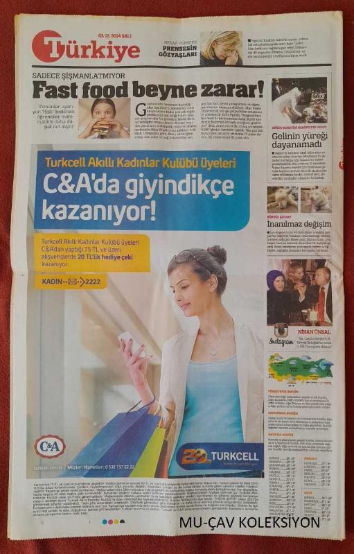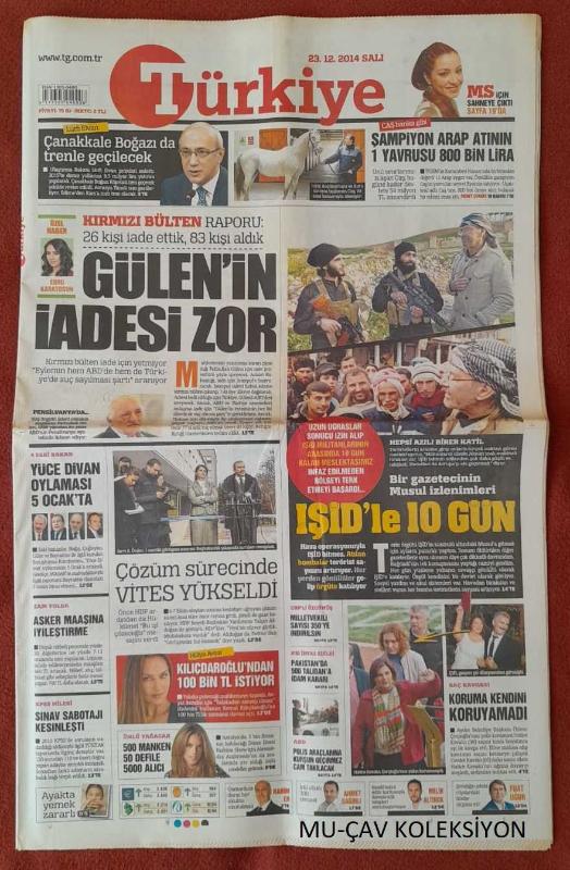 Türkiye Gazetesi 23 Aralık 2014 Gülen'in İadesi Zor,Gaziantep'in Kabusu Bitti,Trabzonspor Lig Tarihinin En Kötü Kaleci Performansını Sergiliyor,Bursa'ya Avrupa Şoku,Aslan Açılımı,Karambolcü Fener adlı eser, Kitap > Süreli Yayınlar > Gazeteler > Türkiye > Genel > Günlük kategorisinde İkinci El olarak satıştadır.