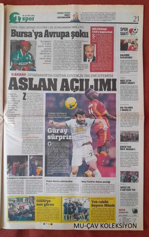 Kitap 2014 yılında yayınlanmıştır. 24 sayfadır. Türkiye Gazetesi 23 Aralık 2014 Gülen'in İadesi Zor,Gaziantep'in Kabusu Bitti,Trabzonspor Lig Tarihinin En Kötü Kaleci Performansını Sergiliyor,Bursa'ya Avrupa Şoku,Aslan Açılımı,Karambolcü Fener adlı eser Türkçe dilindedir.