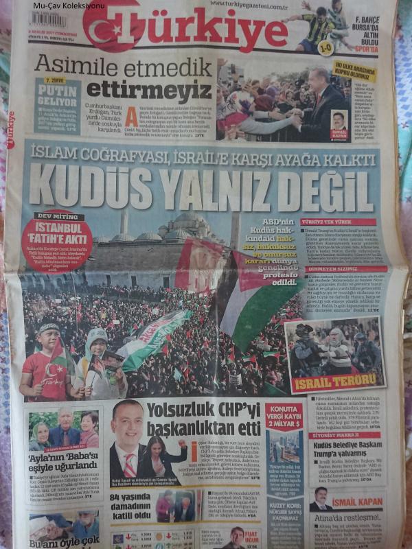 Türkiye Gazetesi,9 Aralık 2017,Recep Tayyip Erdoğan,Vladimir Putin,Tarkan,Nihat Doğan,Ziynet Sali,Aykut Kocaman,Ozan Tufan,Valbuena,Fenerbahçe,Beşiktaş,Vida,Özbek,Emre Belözoğlu adlı eser Türkçe dilindedir.