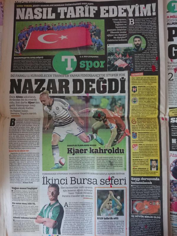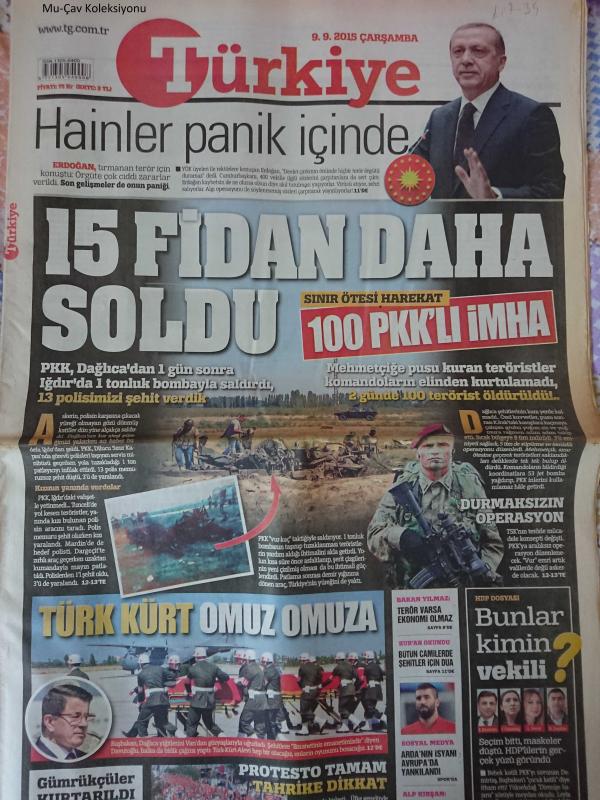 Türkiye Gazetesi,9 Eylül 2015,Recep Tayyip Erdoğan,15 Fidan Daha Soldu,Ahmet Davutoğlu,Arda Turan,Selahattin Demirtaş,Figen Yüksekdağ,Fenerbahçe,Robin Van Persie,Kjaer,Ergin Ataman