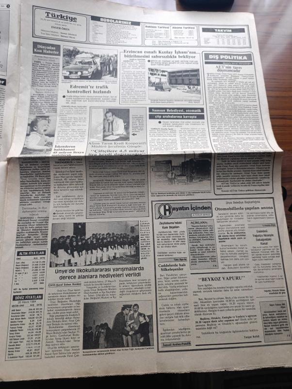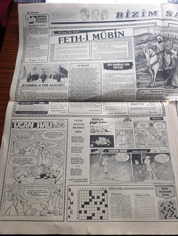 Türkiye Gazetesi - Turkish Newspaper - 29 Mayıs 1984 - Türkiye Irak yazan Yalçın Özer Başmakale - Cumhurbaşkanı Kenan Evren anayasanın değiştirilmesine karşıyım dedi - İstanbul 531 yıl önce bugün fethedilmişti - fetih marşı yazan Arif Nihat Asya - Yusuf Bozkurt Özal DPT müsteşarı oldu - yeni pazarlar bulmak zorundayız - Güney Koreli iki gemici Müslüman oldu fotoğraf - Türk Irak resmi görüşmeleri yapıldı - Başbakan Turgut Özal bugün devlet başkanı Saddam Hüseyin ile görüşecek - Çin'de komünizm çözülüyor yazan Mehmet Sedat - Erzincan esnafı Kızılay İş hanı'nın bitirilmesini sabırsızlıkla bekliyor - Resimli Evliya Çelebi seyahatnamesi hazırlayan Kemal Akmeriç Desen Samim Utkun Yazı Dizisi - Peygamberler tarihi yazan Abdüllatif Uyan Yazı Dizisi - kur'an-ı Kerim hıfz ve tilaveti yarışması bugün açık hava tiyatrosunu yapılacak - Galatasaray Fenerbahçe Beşiktaş liderliği tattı ama son gülen iyi güldü - Trabzonspor şampiyon oldu - haftanın takımı Kocaelispor - Tarık Hoçiç son gol Fotoğrafı, Enver Ören tarafından kaleme alınmıştır. Türkiye Gazetesi - Turkish Newspaper - 29 Mayıs 1984 - Türkiye Irak yazan Yalçın Özer Başmakale - Cumhurbaşkanı Kenan Evren anayasanın değiştirilmesine karşıyım dedi - İstanbul 531 yıl önce bugün fethedilmişti - fetih marşı yazan Arif Nihat Asya - Yusuf Bozkurt Özal DPT müsteşarı oldu - yeni pazarlar bulmak zorundayız - Güney Koreli iki gemici Müslüman oldu fotoğraf - Türk Irak resmi görüşmeleri yapıldı - Başbakan Turgut Özal bugün devlet başkanı Saddam Hüseyin ile görüşecek - Çin'de komünizm çözülüyor yazan Mehmet Sedat - Erzincan esnafı Kızılay İş hanı'nın bitirilmesini sabırsızlıkla bekliyor - Resimli Evliya Çelebi seyahatnamesi hazırlayan Kemal Akmeriç Desen Samim Utkun Yazı Dizisi - Peygamberler tarihi yazan Abdüllatif Uyan Yazı Dizisi - kur'an-ı Kerim hıfz ve tilaveti yarışması bugün açık hava tiyatrosunu yapılacak - Galatasaray Fenerbahçe Beşiktaş liderliği tattı ama son gülen iyi güldü - Trabzonspor şampiyon oldu - haftanın takımı Kocaelispor - Tarık Hoçiç son gol Fotoğrafı adlı eser Türkçe dilindedir.