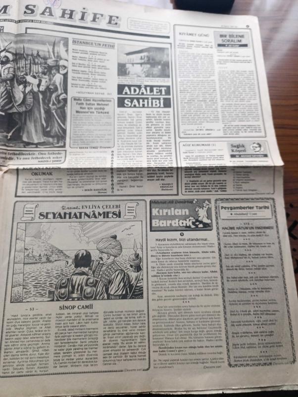 Türkiye Gazetesi - Turkish Newspaper - 29 Mayıs 1984 - Türkiye Irak yazan Yalçın Özer Başmakale - Cumhurbaşkanı Kenan Evren anayasanın değiştirilmesine karşıyım dedi - İstanbul 531 yıl önce bugün fethedilmişti - fetih marşı yazan Arif Nihat Asya - Yusuf Bozkurt Özal DPT müsteşarı oldu - yeni pazarlar bulmak zorundayız - Güney Koreli iki gemici Müslüman oldu fotoğraf - Türk Irak resmi görüşmeleri yapıldı - Başbakan Turgut Özal bugün devlet başkanı Saddam Hüseyin ile görüşecek - Çin'de komünizm çözülüyor yazan Mehmet Sedat - Erzincan esnafı Kızılay İş hanı'nın bitirilmesini sabırsızlıkla bekliyor - Resimli Evliya Çelebi seyahatnamesi hazırlayan Kemal Akmeriç Desen Samim Utkun Yazı Dizisi - Peygamberler tarihi yazan Abdüllatif Uyan Yazı Dizisi - kur'an-ı Kerim hıfz ve tilaveti yarışması bugün açık hava tiyatrosunu yapılacak - Galatasaray Fenerbahçe Beşiktaş liderliği tattı ama son gülen iyi güldü - Trabzonspor şampiyon oldu - haftanın takımı Kocaelispor - Tarık Hoçiç son gol Fotoğrafı adlı eser, Kitap > Süreli Yayınlar > Gazeteler > Türkiye > Genel > Günlük kategorisinde İkinci El olarak satıştadır.