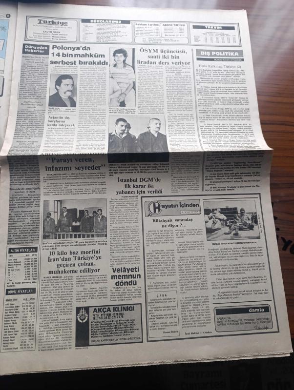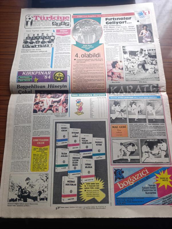 Türkiye Gazetesi - Turkish Newspaper - 3 Ağustos 1984 - emekli olmak isteyenler arttı - İstanbul gazeteciler cemiyeti başkanı Nezih Demirkent kimse fuhşiyata prim veremez dedi - Dolmabahçe sarayı'nın dış duvarı yıktırılacak - Türkiye Irak 2. Petrol boru hattı projesi Irak tarafından benimsendi - pasaportlar değiştiriliyor - nükleer santral çalışmaları son safhaya geldi - Türkiye'nin gündemindeki mesele işsizlik inceleme Enver Durmuş - İstanbul DGM'de ilk karar iki yabancı için verildi - Resimli Evliya Çelebi seyahatnamesi hazırlayan Kemal Akmeriç Desen Samim Utkun Yazı Dizisi - Peygamberler tarihi yazan Abdüllatif Uyan Yazı Dizisi - 1984 Los Angeles Yaz Olimpiyat Oyunları - altın madalyaların Willy Banks Carl Lewis Moses Ve Sebastian Coe Ve Mary Decker arasında paylaşılması bekleniyor fotoğraf - Kırkpınar 84 hazırlayan spor servisi - Karate fotoğraflar Mehmet Beytül Hazırlayan Ekrem Özdamar - Grekoromen güreşlerinde Salih Bora kilosunda 4. Olabildi - Elazığspor kümede kalmaya çalışacak adlı eser, Kitap > Süreli Yayınlar > Gazeteler > Türkiye > Genel > Günlük kategorisinde İkinci El olarak satıştadır.