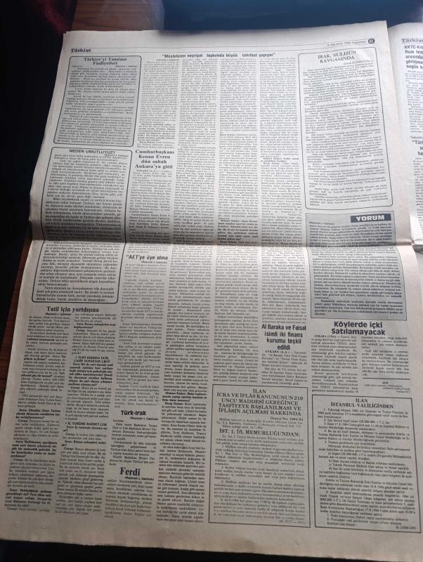 Türkiye Gazetesi Sayfa Boyutu : 42*58 cm Sayfa Sayısı: 8 Yıpranma, sararmalar, kupon kesiği ve yırtılmalar zamana bağlı olarak görülebilir Not: Tam takım gazetedir