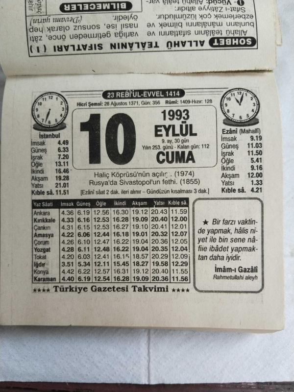 Türkiye Gazetesi takvimi 10 Eylül 1993 doğum günü hediyesi hediyelik takvim yaprağı, en son 1 yıl önce güncellenmiştir.