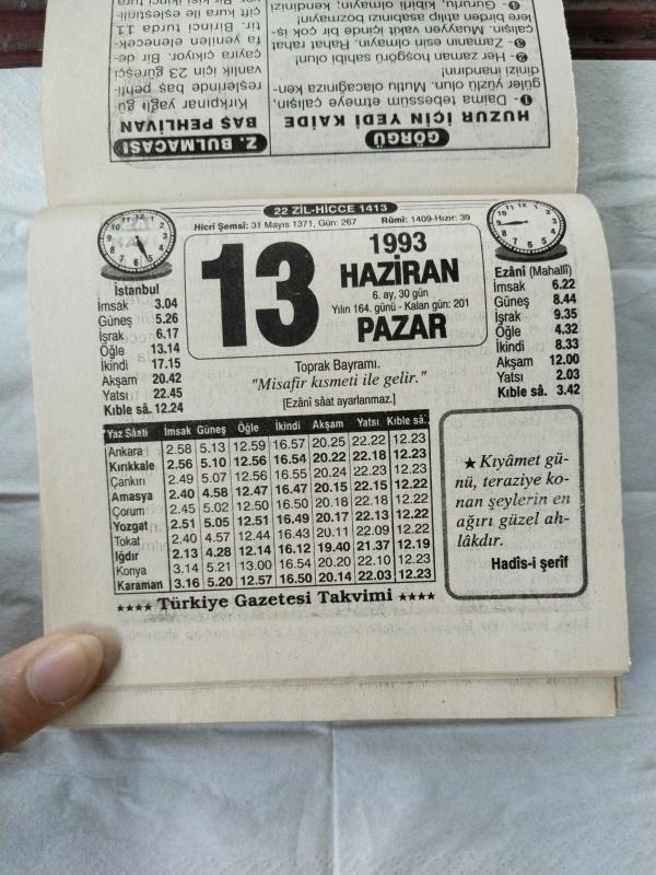 Türkiye Gazetesi takvimi 13 Haziran 1993 doğum günü hediyesi hediyelik takvim yaprağı, en son 1 yıl önce güncellenmiştir.