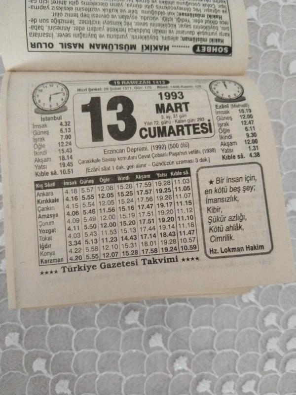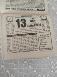 Türkiye Gazetesi takvimi 13 Mart 1993 doğum günü hediyesi hediyelik takvim yaprağı, en son 1 yıl önce güncellenmiştir.
