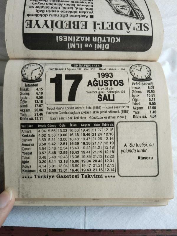 Türkiye Gazetesi takvimi 17 Ağustos 1993 doğum günü hediyesi hediyelik takvim yaprağı, en son 1 yıl önce güncellenmiştir.
