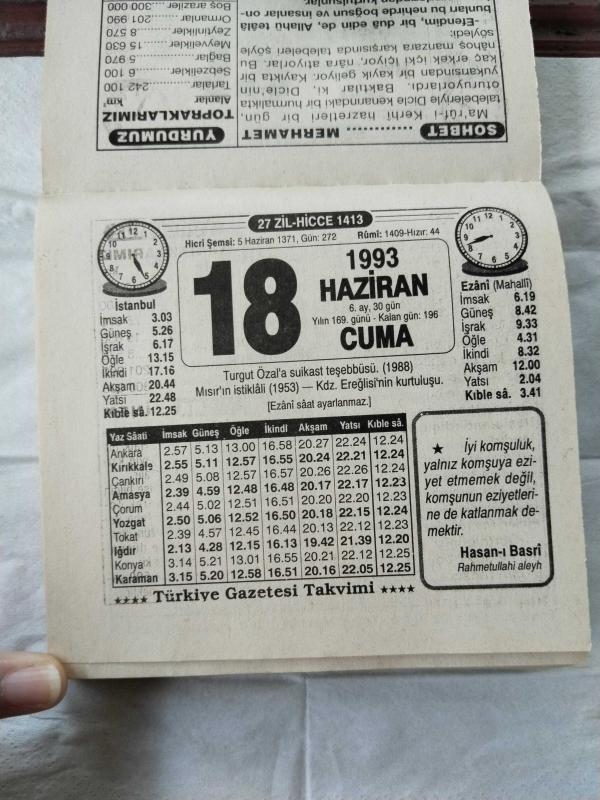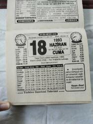 Türkiye Gazetesi takvimi 18 Haziran 1993 doğum günü hediyesi hediyelik takvim yaprağı, en son 1 yıl önce güncellenmiştir.