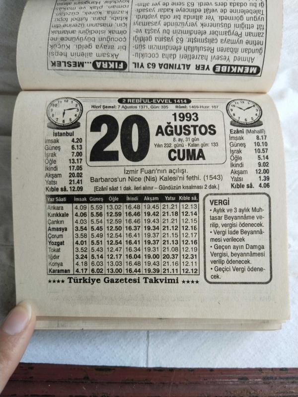 Türkiye Gazetesi takvimi 20 Ağustos 1993 doğum günü hediyesi hediyelik takvim yaprağı, en son 1 yıl önce güncellenmiştir.