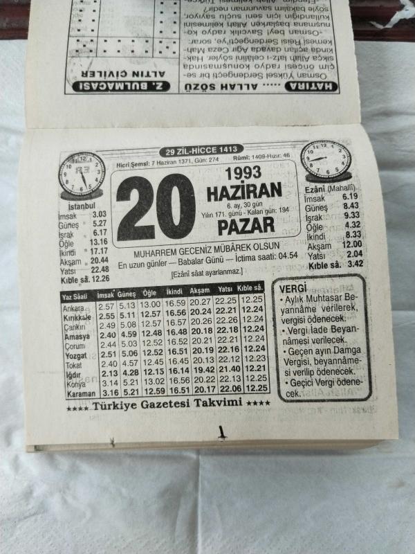 Türkiye Gazetesi takvimi 20 Haziran 1993 doğum günü hediyesi hediyelik takvim yaprağı, en son 1 yıl önce güncellenmiştir.