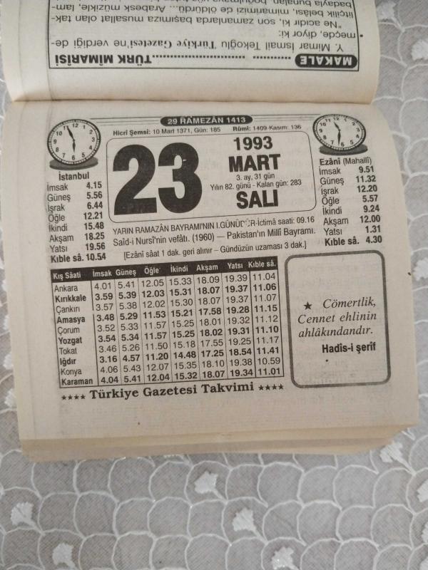 Türkiye Gazetesi takvimi 23 Mart 1993 doğum günü hediyesi hediyelik takvim yaprağı, en son 1 yıl önce güncellenmiştir.
