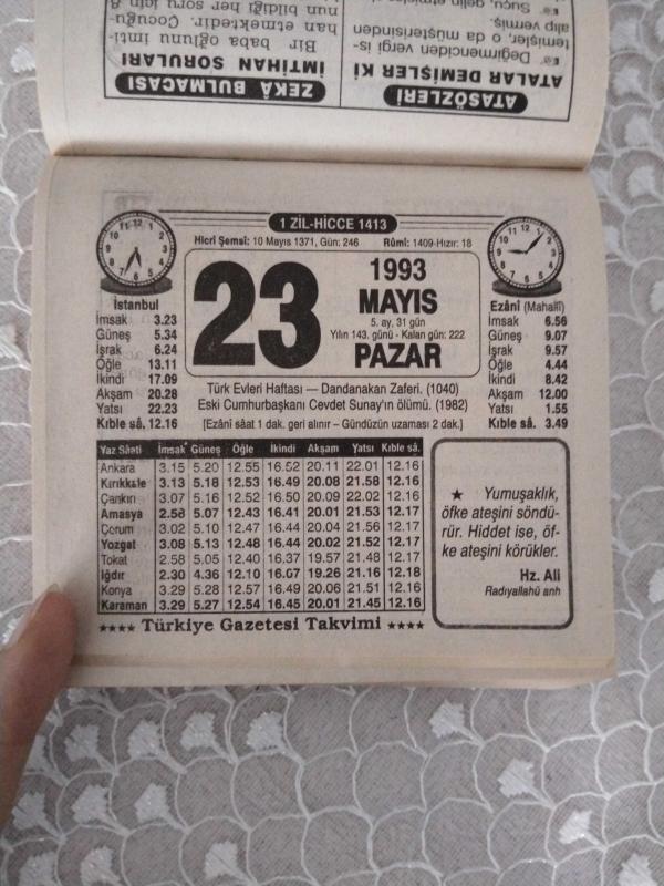 Türkiye Gazetesi takvimi 23 Mayıs 1993 doğum günü hediyesi hediyelik takvim yaprağı, en son 1 yıl önce güncellenmiştir.