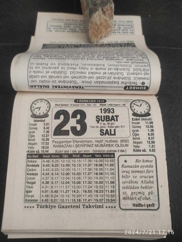 Türkiye Gazetesi takvimi 23 Şubat 1993 doğum günü hediyesi hediyelik takvim yaprağı, en son 1 yıl önce güncellenmiştir.