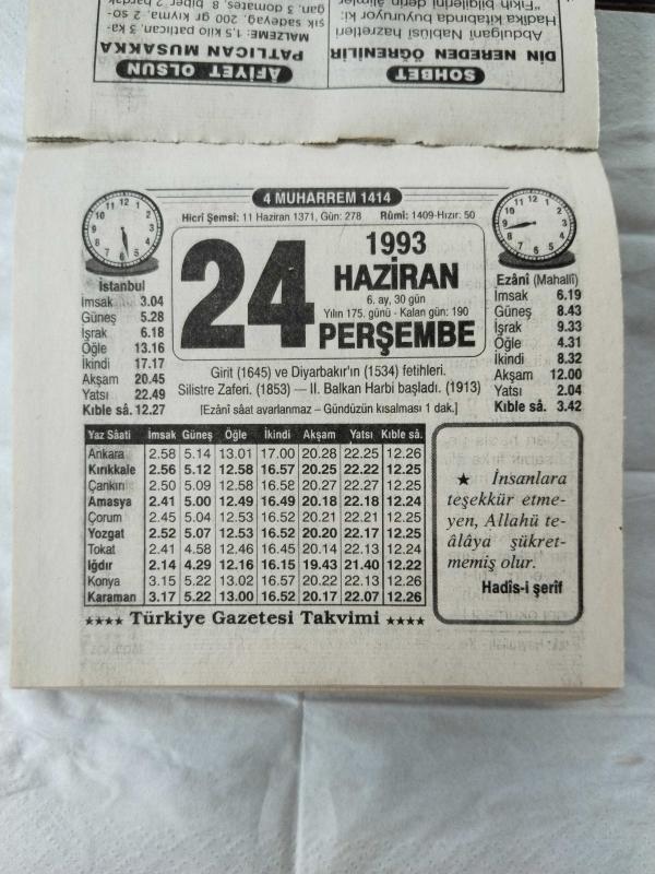Türkiye Gazetesi takvimi 24 Haziran 1993 doğum günü hediyesi hediyelik takvim yaprağı, en son 1 yıl önce güncellenmiştir.