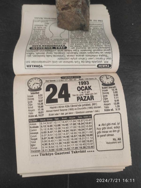 Türkiye Gazetesi takvimi 24 Ocak 1993 doğum günü hediyesi hediyelik takvim yaprağı, en son 1 yıl önce güncellenmiştir.