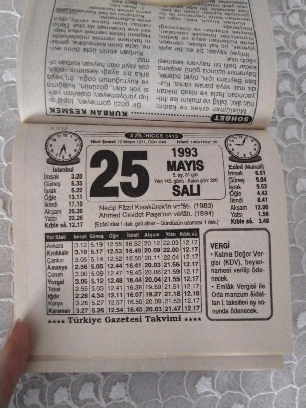Türkiye Gazetesi takvimi 25 Mayıs 1993 doğum günü hediyesi hediyelik takvim yaprağı, en son 1 yıl önce güncellenmiştir.