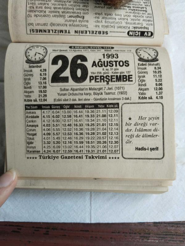 Türkiye Gazetesi takvimi 26 Ağustos 1993 doğum günü hediyesi hediyelik takvim yaprağı, 1 yıl önce satışa sunulmuştur.