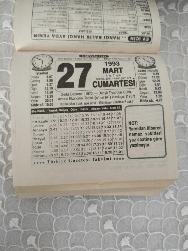 Türkiye Gazetesi takvimi 27 Mart 1993 doğum günü hediyesi hediyelik takvim yaprağı, en son 1 yıl önce güncellenmiştir.